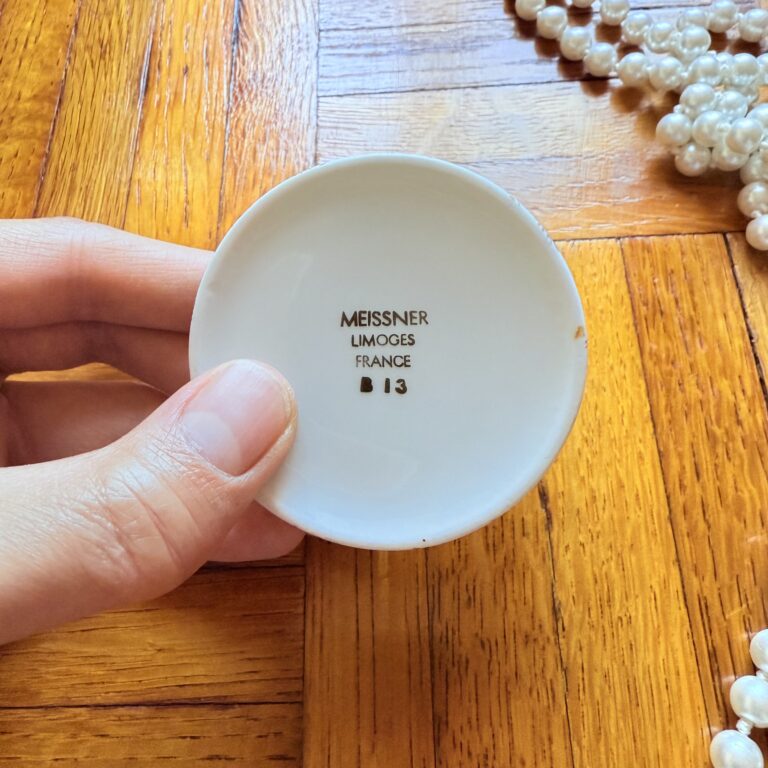 Limoges doesn’t refer to a specific maker. Limoges is actually a city in southwest-central France renowned for its fine porcelain since the late 1700s. For centuries, the Europeans wanted to emulate Chinese porcelain but found themselves falling short, creating not-quite-there dupes like Venetian milk glass.