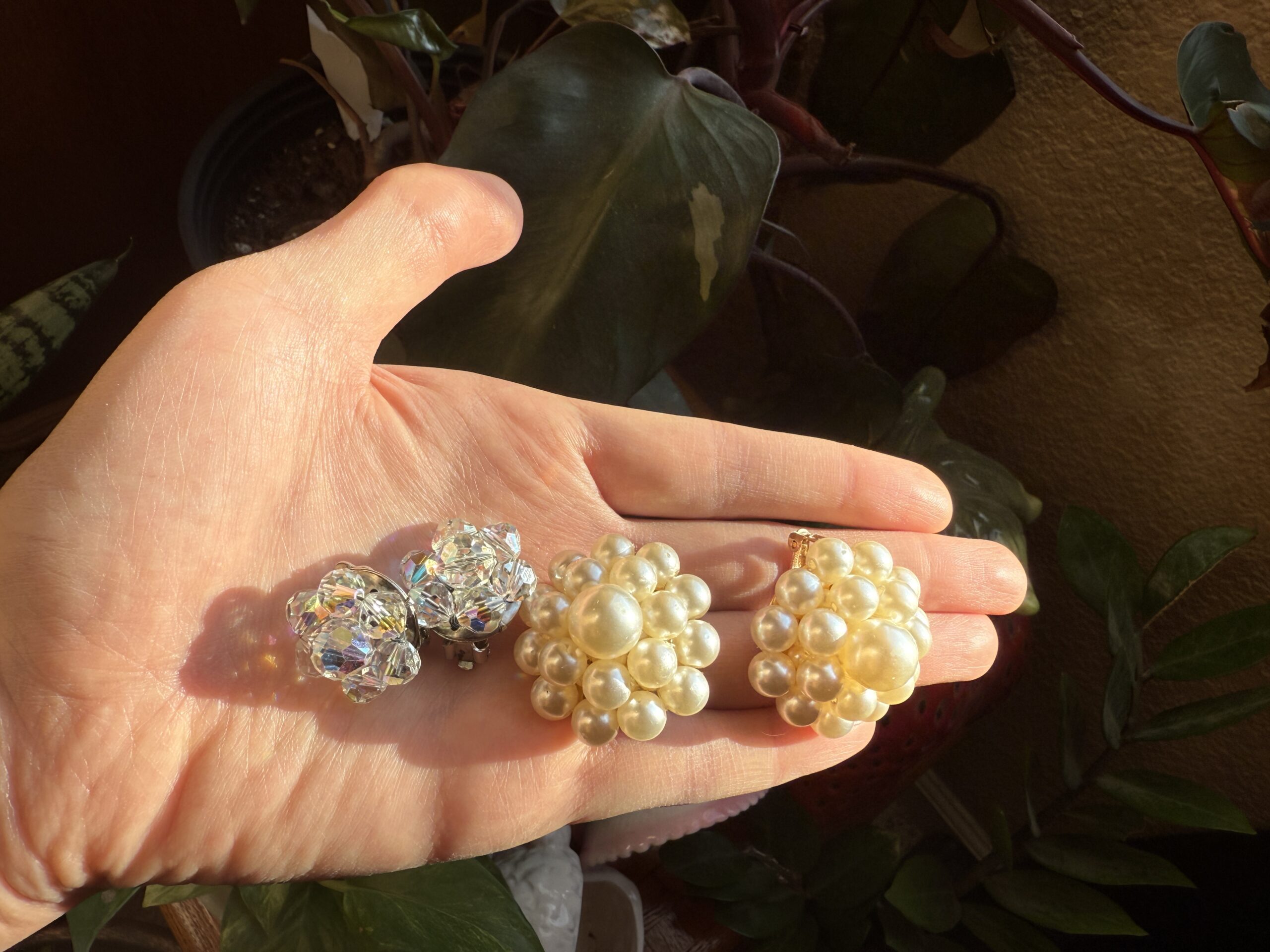 Two clip-on earring styles that were especially popular included the AB and faux pearl cluster designs. (Personally, I have a small army of these from Whatnot…)