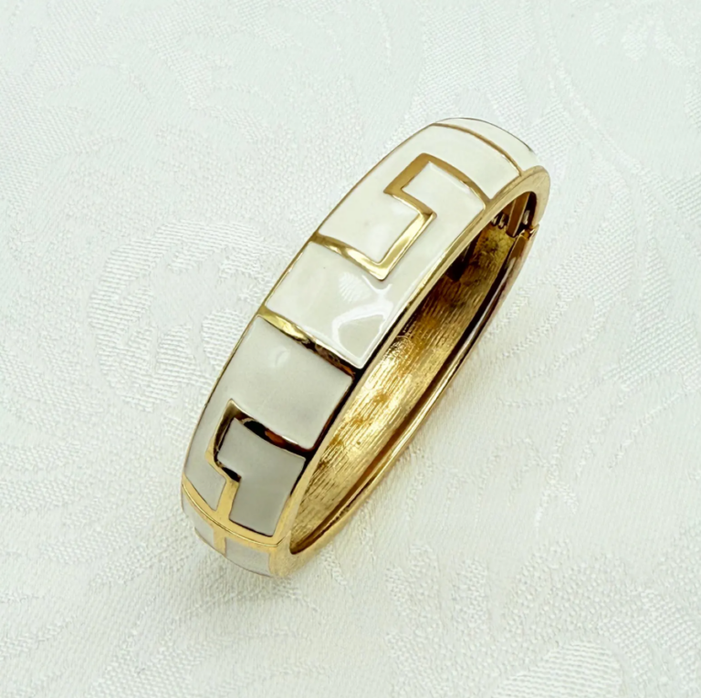 When I launched my vintage jewelry shop last year, I desperately sought out pieces with glimmery gems and sparkling rhinestones. Reality diverged from my hopes and expectations, of course. While treasure hunting at thrift stores, estate sales, and flea markets, I actually found myself picking up a great deal of enamel jewelry, hoarding everything from enamel bangles to gold tone cloisonné clip-on earrings.