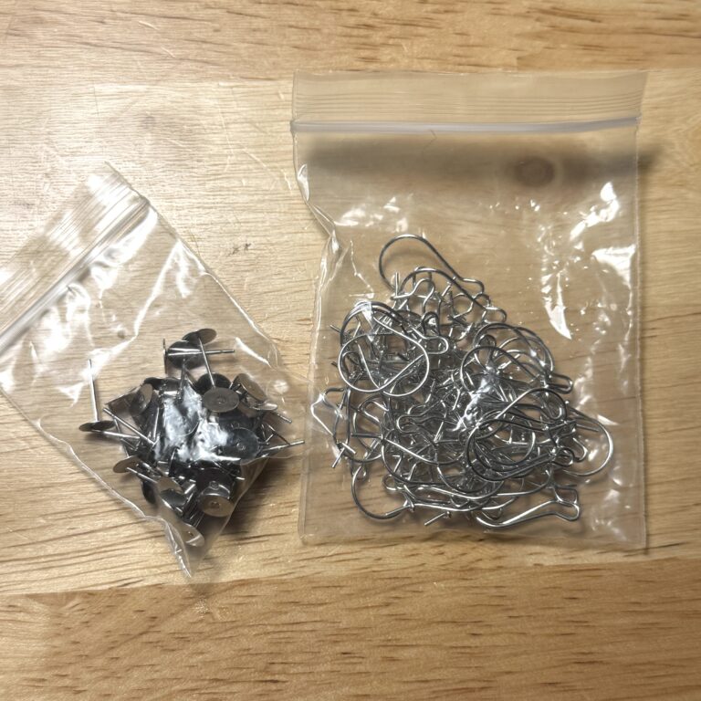 Alternatively, you can attach your clip ons to studded posts. This can work whether or not your clip-on earring has a hole (although the hole makes it easy for you to pop your post through). Again, studded posts, like kidney wires, are relatively easy to find at craft stores. I recommend securing your clip-ons to studs with Epoxy glue for a strong hold. If you can, try to find bigger settings and longer posts–they will take the weight of your clip on better and feel more comfortable.
