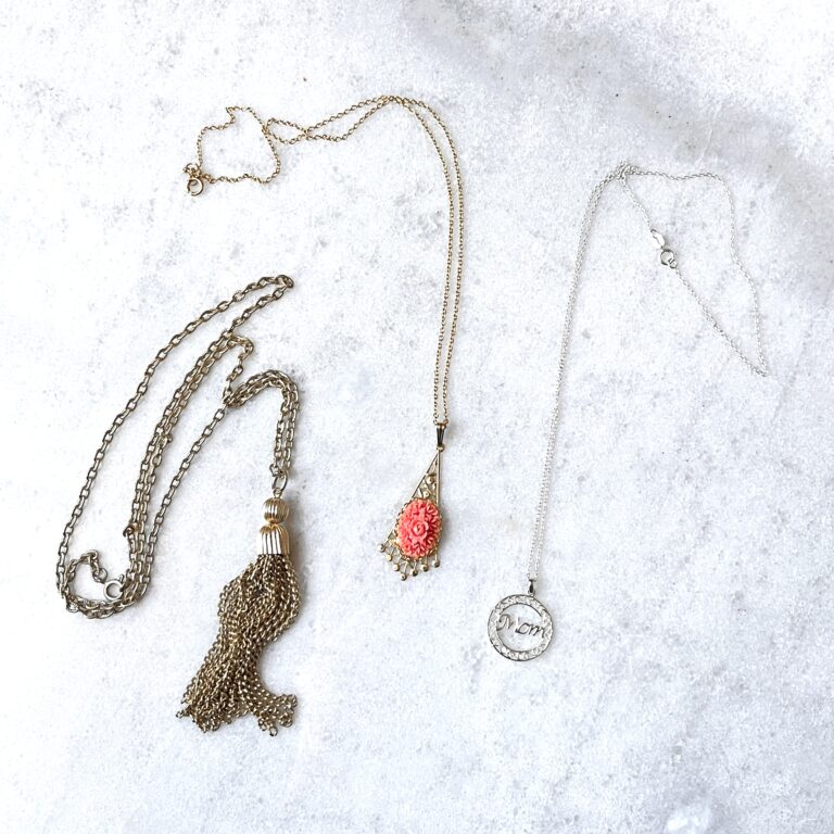 When you shop secondhand jewelry for Mother’s Day, you’ll come across a wide range of pieces with vintage charm and character. All you need to do is evaluate pieces for condition and style! Right now, I’m stocking up my vintage Etsy shop for Mother’s Day and graduation gifts—take a look around to find the perfect gift or some inspiration.